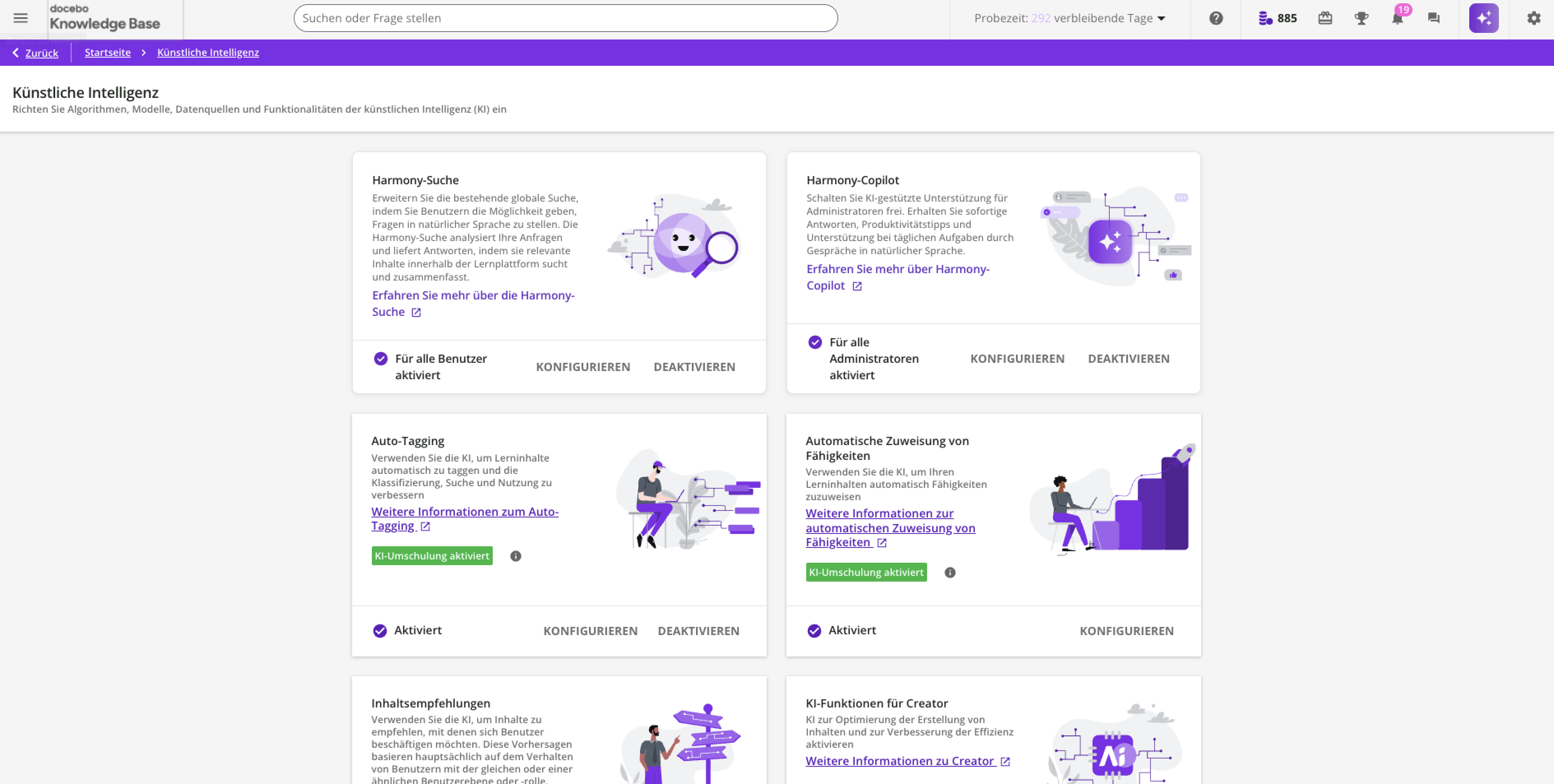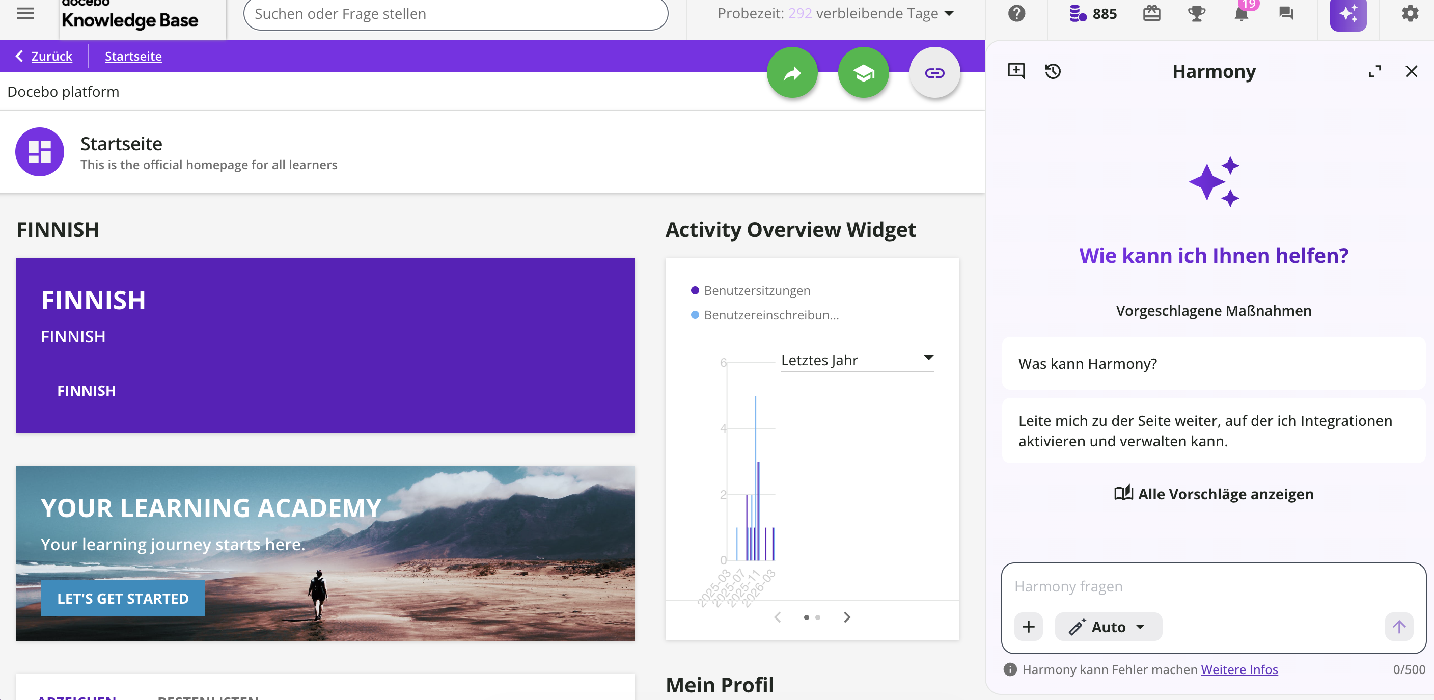 - Docebo-Community-Anleitungen bieten kuratierte Tutorials, die der Harmony-Copilot als zusätzliche Wissensquelle nutzt.