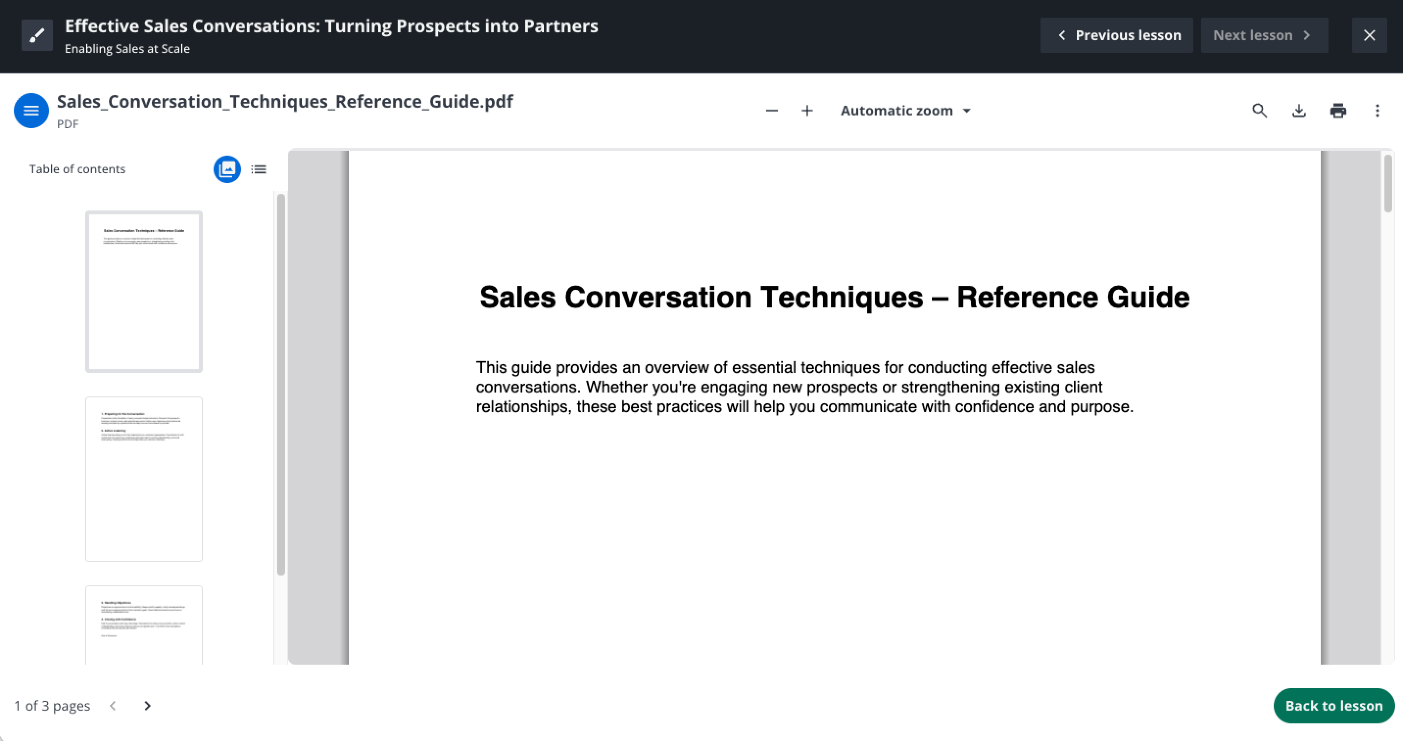 Blättern Sie durch die Seiten, um den gesamten Inhalt des Dokuments zu lesen, und drücken Sie dann die Zurück zur Lektion-Schaltfläche unten auf der Seite. Wie bei Aktivitäten können Dokumente verpflichtend oder optional sein.