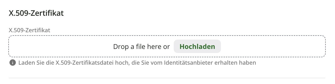Hier müssen Sie das X.509-Zertifikat hochladen, das Sie vom Identitätsanbieter erhalten.
