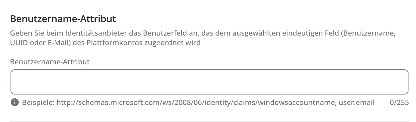 Hier legen Sie fest, welches Feld des Identitätsanbieters (Benutzername-Attribut) verwendet wird, um den Benutzer innerhalb der Lernplattform eindeutig zu identifizieren.