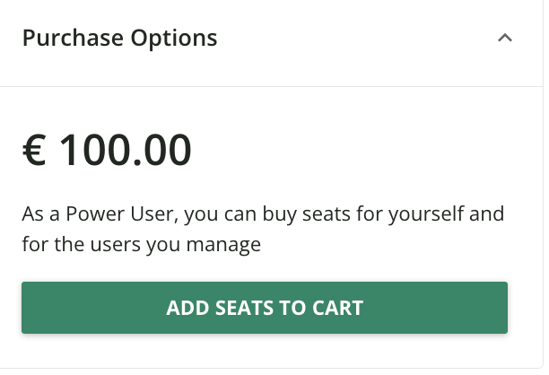 As a Power User, you can purchase one or more seats that you can later use for enrolling yourself or your users in a course.