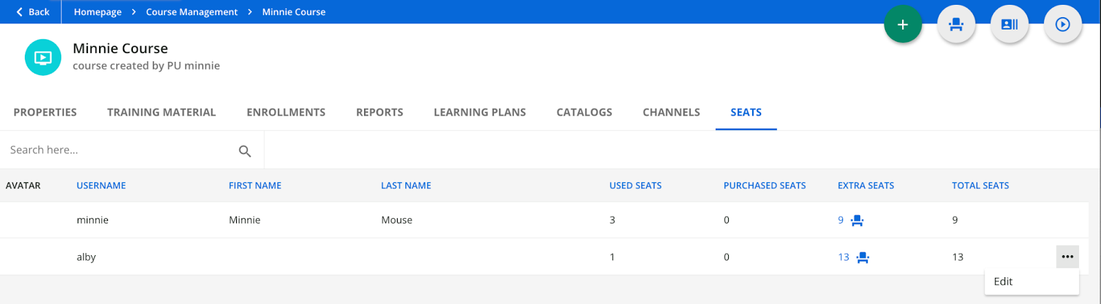 This article covers how to work with course seats, meaning those that are managed from the Seats tab of a specific course. For information about subscription seats, refer instead to the article Creating and managing subscription plans.