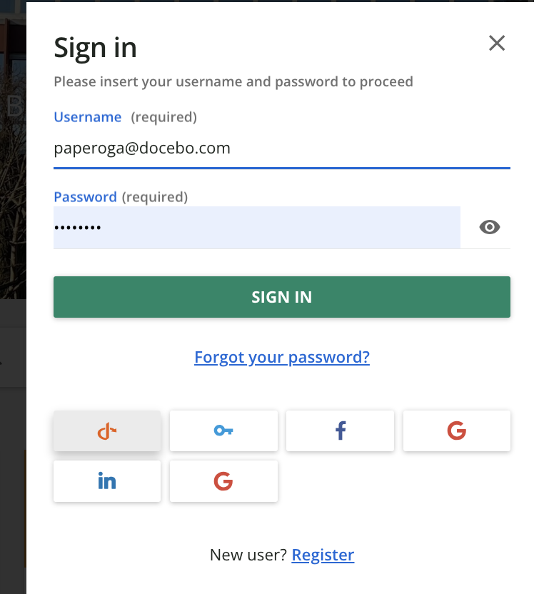 Tip: In Admin menu > Configure branding and look > Sign in page you can set the option Show only SSO buttons and hide login form, in this case the Sign in form will show only the SSO buttons, but not the username and password fields.