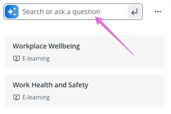You will be presented with several options, typing a standard search in the search box will provide you with traditional search results for your content and give you a list of content. Pressing the Ask Harmony button will open a chat with Harmony AI where you can ask questions about the content provided to you in your platform.