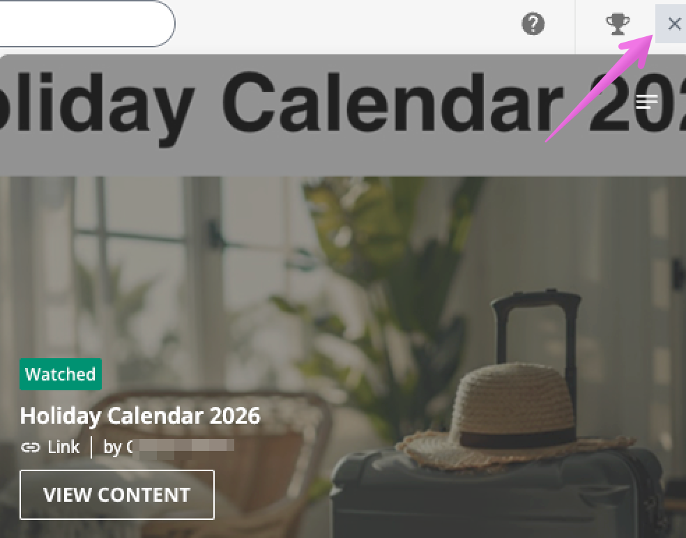 When viewing content, you can close the window overlay by pressing the X button: