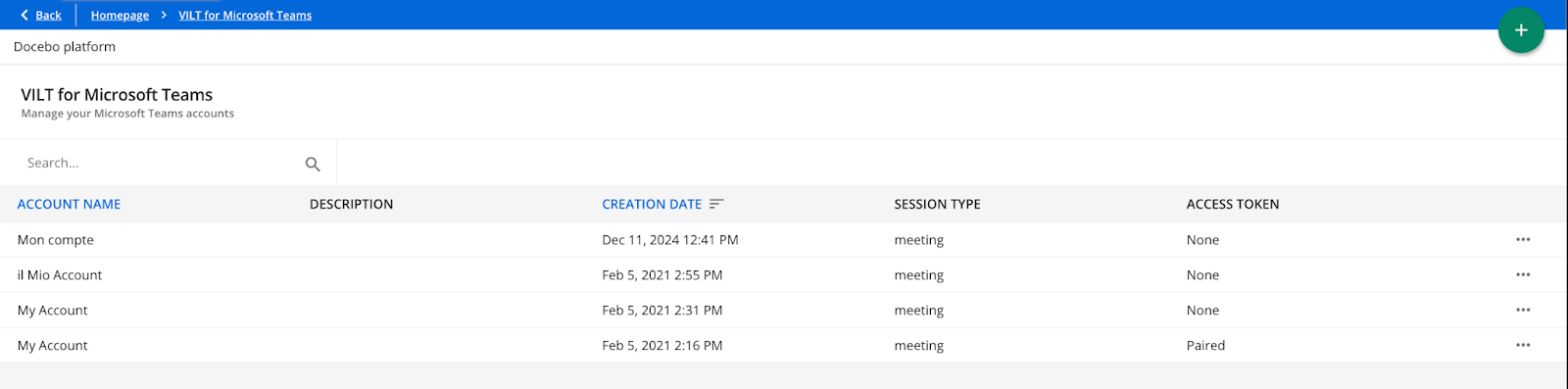 When you configure the VILT for Microsoft Teams integration in the platform, you will be able to add one or more Microsoft Teams accounts there.
