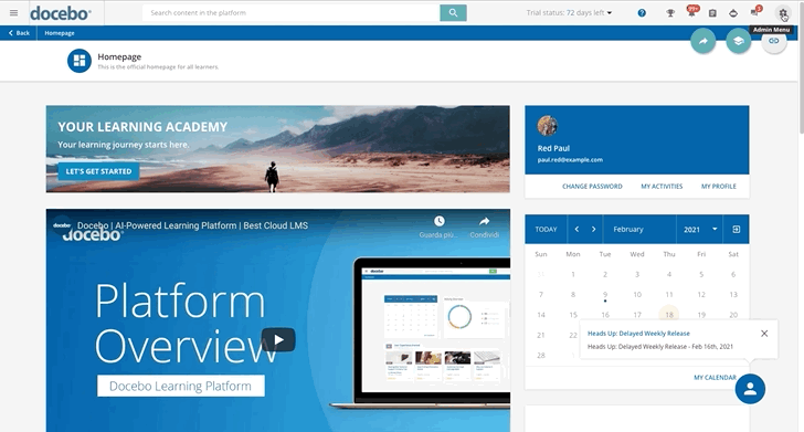In your platform, you can activate the Gamification app to use gamification in your training programs, where it helps to make the experience more fun and interactive, leveraging people’s innate desire for competition, self-expression and achievement. Refer to the Gamification main article to learn how to activate the app and to know more about its features, badges and contests.