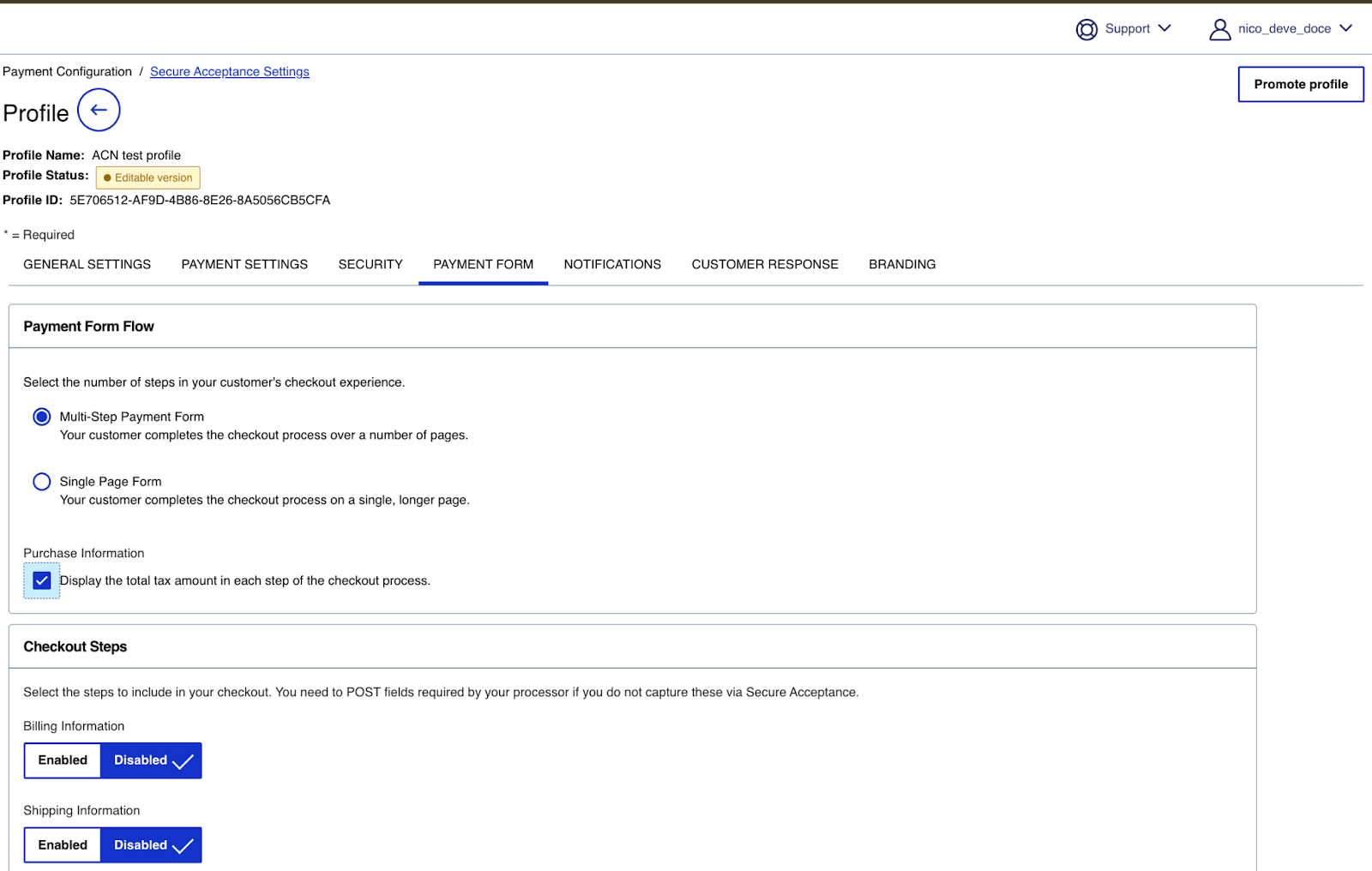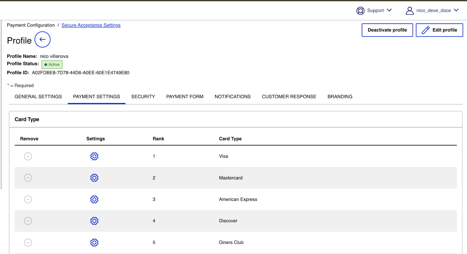 Configure a profile in Cybersource