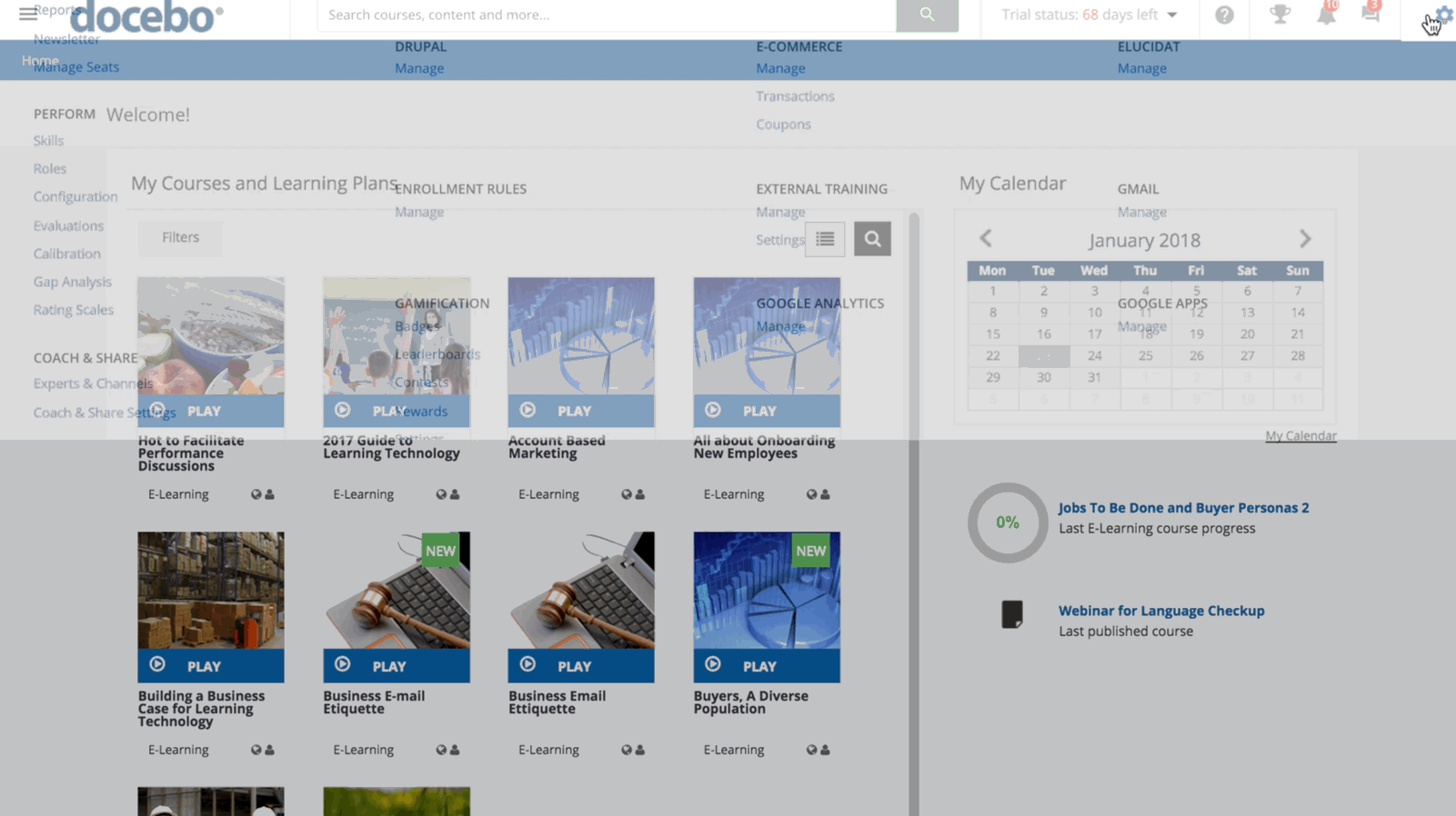 - The course’s code, name, and type (E-learning, Webinar, or Classroom)