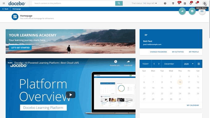 Disclaimer: Some content in this article outlines how to use functionalities that may not be available on all plans. Get in touch with your account manager (if your plan includes this option) or reach out to Docebo using your platform's Help center if you wish to upgrade your plan.