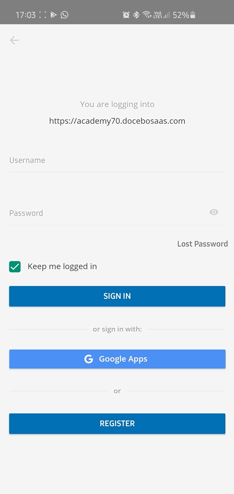 Si vous n'avez pas encore de compte sur la plateforme de formation, vous pourrez peut-être en créer un directement depuis l'application mobile, à condition que cette fonctionnalité ait été activée par votre administrateur.