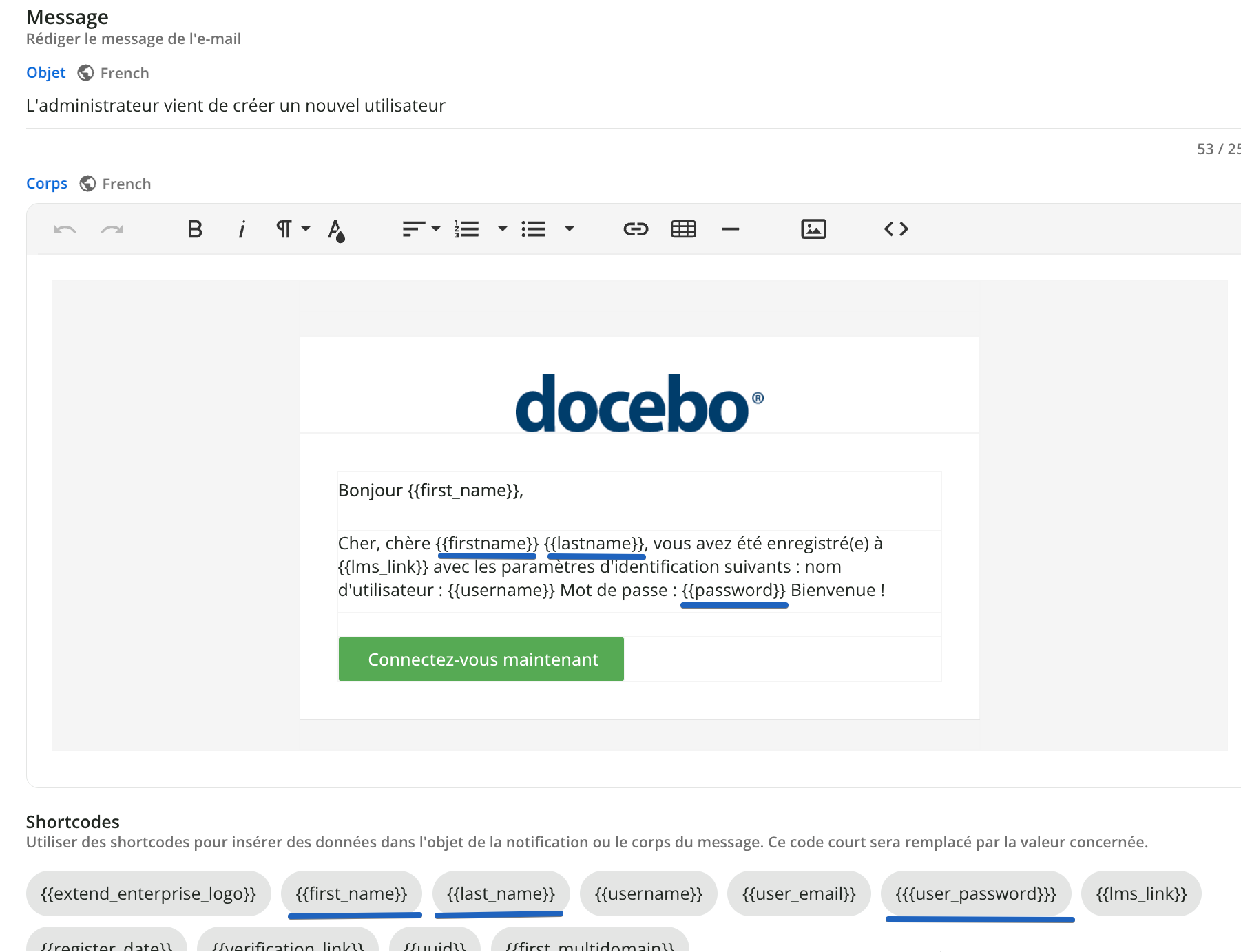 {{firstname}} → le code correct est {{first_name}}{{lastname}} → le code correct est {{last_name}}{{password}} → le code correct est {{user_password}}