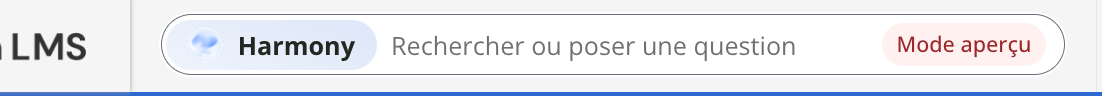 Le mode aperçu, dans lequel la recherche Harmony n’est activée que pour vous, est un paramètre côté client stocké dans votre navigateur. Si vous effacez le cache/les cookies, ouvrez une fenêtre incognito, changez de navigateur ou vous connectez à partir d’un autre dispositif, l’indicateur d’aperçu est supprimé. Dans ce cas, la plateforme revient à l’ancienne barre de recherche, et l’option Recherche Harmony dans les paramètres d’intelligence artificielle est réinitialisée sur Désactivé.