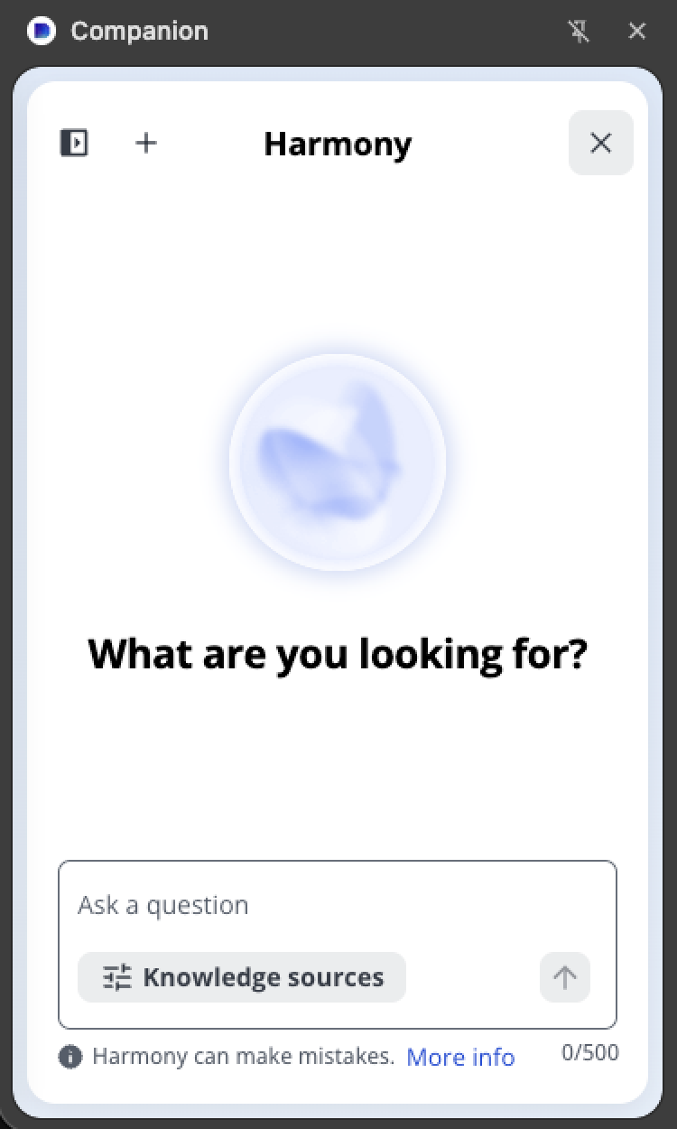 - Chaque fenêtre du navigateur conserve sa propre instance de Companion, qui partage la même session, mais peut être utilisée séparément.