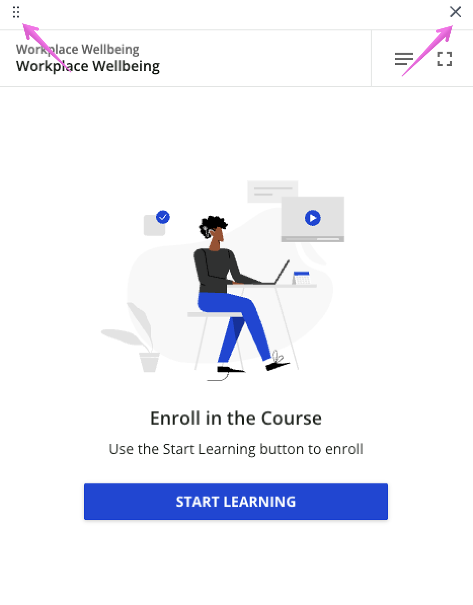 Sélectionnez un contenu dans Companion pour ouvrir le lecteur dans la fenêtre principale. Vous pouvez soit y visualiser le contenu dans une fenêtre flottante au-dessus du contenu de la fenêtre, soit appuyer sur le bouton plein écran pour vous concentrer uniquement sur le contenu pédagogique sélectionné.