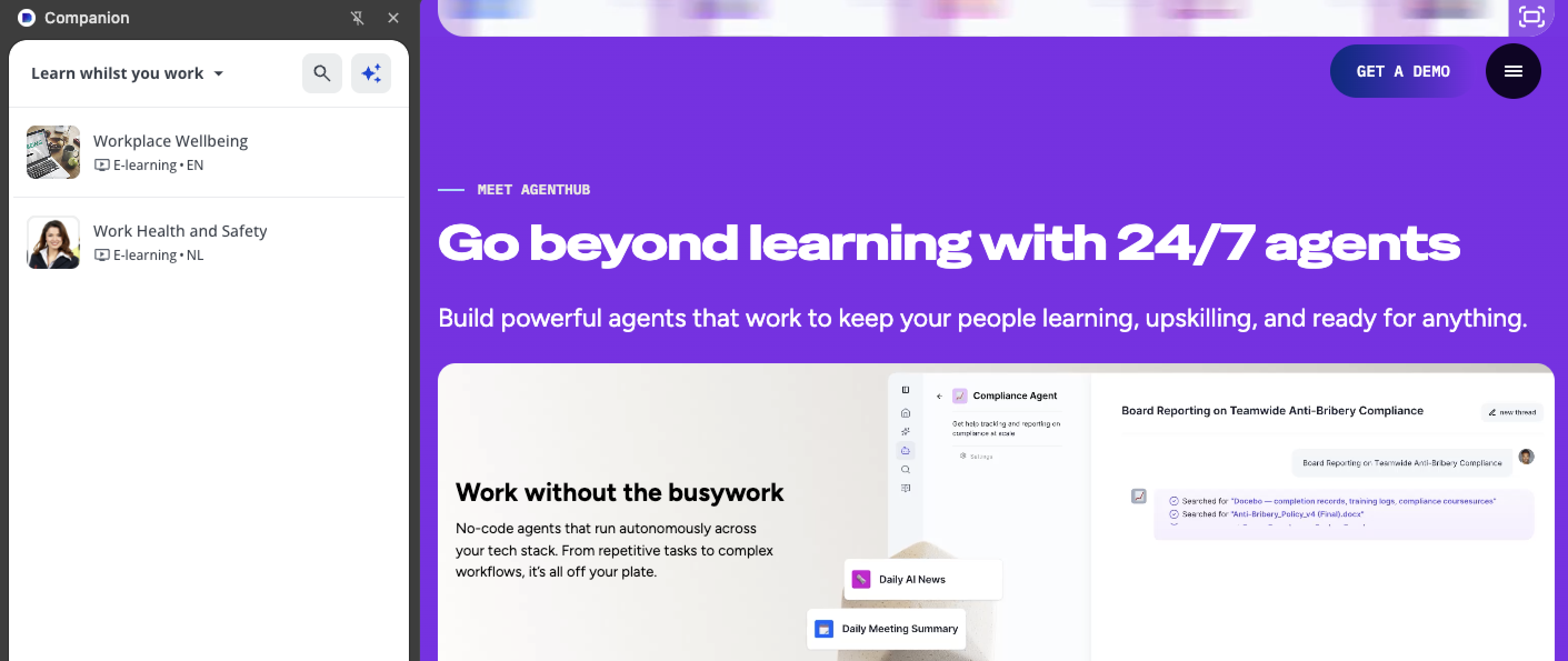 Companion offre une meilleure expérience utilisateur et crée des habitudes pour une adoption et une utilisation accrues, ce qui permet à tous vos apprenants de tirer le meilleur parti de votre plateforme.