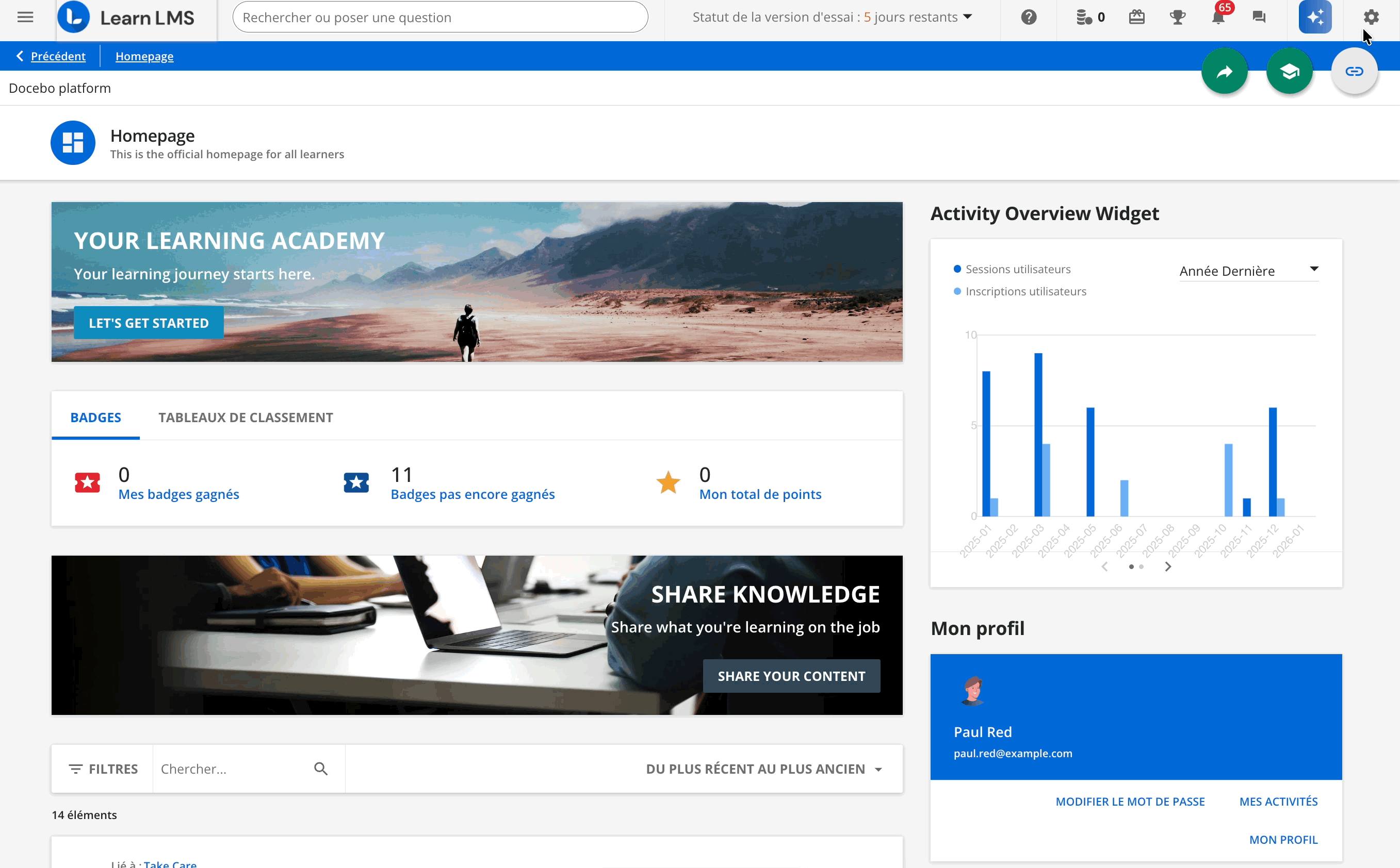 Pour ceux qui utilisent le thème 7.0 avec un domaine personnalisé, n’oubliez pas d’en insérer l’URL. Pour ceux qui utilisent le thème 6.9, utilisez toujours l’URL docebosaas. Utilisez les exemples ci-dessous comme guides (notez que tout ce qui est entre crochets devra être remplacé par les informations de votre propre LMS) :
