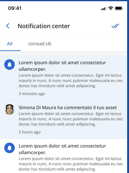Infine, toccando l'icona della campana nell'intestazione, si accede al centro notifiche mobile.