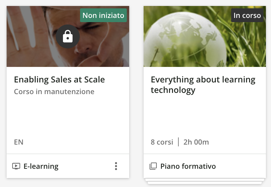 Se l'iscrizione non è ancora valida, la scheda del corso sarà bloccata e indicherà da quando il corso diventerà accessibile. Una volta che l'iscrizione è valida, la scheda indicherà la sua scadenza, se impostata.